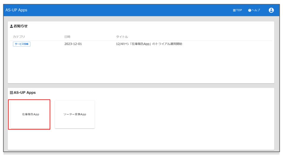 ログイン⇒在庫報告APP表示までの流れ       分かりずらい場合は動画をご覧ください→こちらをクリック